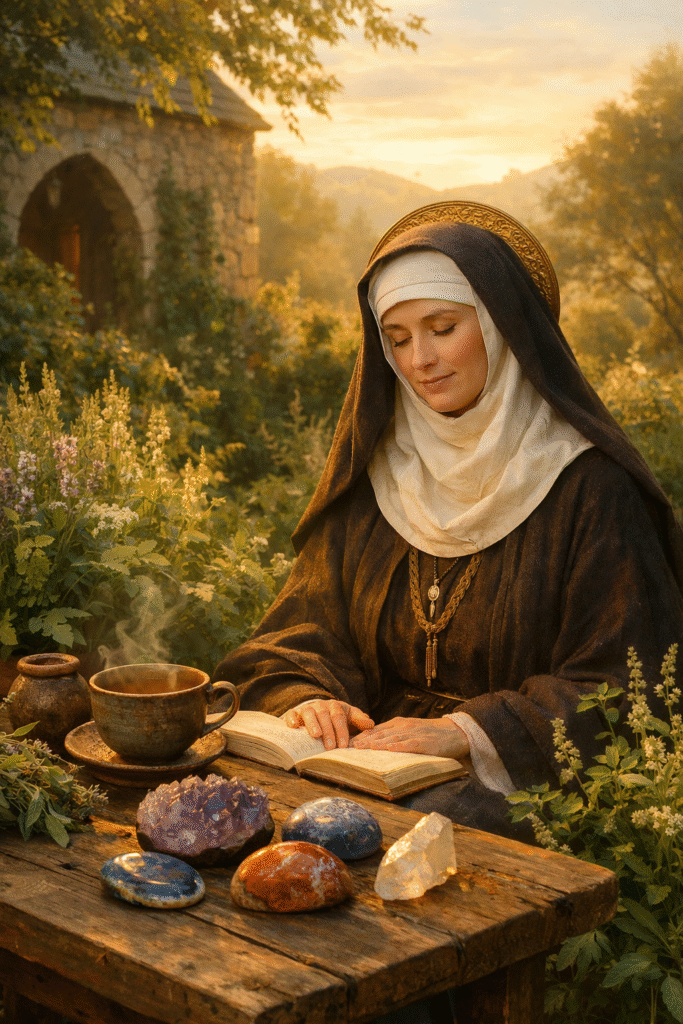 Outro elemento presente na tradição atribuída a Hildegarda é o uso de pedras naturais como auxílio ao equilíbrio interior. Embora sua aplicação exija discernimento, algumas pedras são tradicionalmente associadas à calma e à proteção emocional.