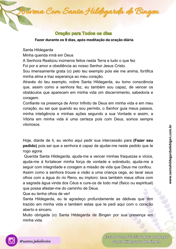 - Mentalize que você está se conectando com Deus e com os ensinamentos de Santa Hildegarda.