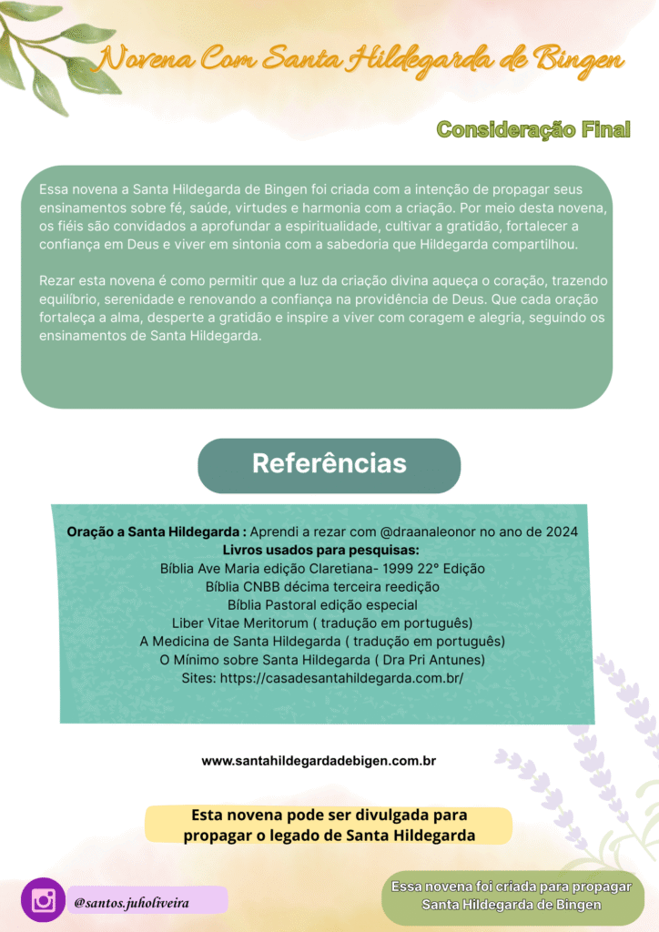 - Agradeça a Deus e a Santa Hildegarda pela inspiração, proteção e ensinamentos recebidos.