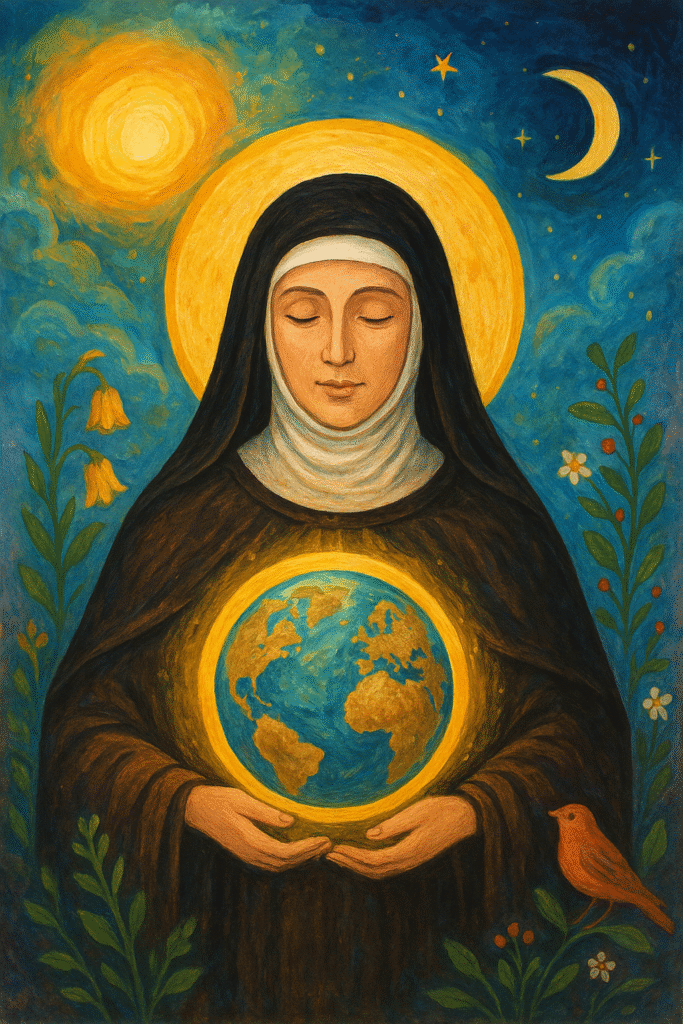 Santa Hildegarda de Bingen, mulher de sabedoria rara e coração cheio do Espírito Santo, enxergava o universo não apenas como algo distante, mas como uma criação viva que fala de Deus. Em suas visões, ela via o cosmos como um reflexo do amor divino, onde tudo tem um lugar, uma missão e uma beleza própria.